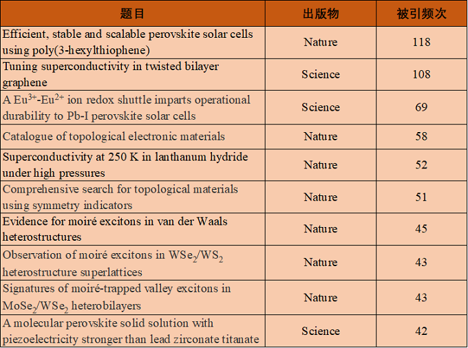 Nature/Science高被引论文TOP10(20191226更新):