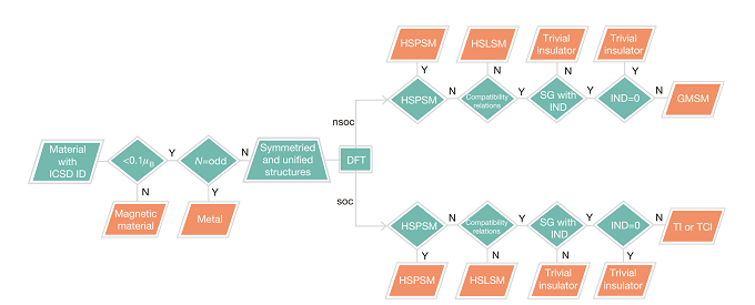 硒化铋、砷化钽、铋化钠等拓扑电子材料在块体中表现出非常规的线性响应,在其边界处的异常无高斯状态。它们具有基础和应用价值,具有应用于高性能电子和量子计算的潜力。但迄今为止,它们的探测一直受到计算拓扑不变特性的阻碍,这既需要材料方面的经验,也需要先进理论工具方面的专业知识。中国科学院物理研究所的翁红明研究员以及方辰研究员团队介绍了一种有效的、高效的、全自动的非磁性材料中非平凡能带拓扑诊断算法。算法是基于最近开发的已占据带的对称表示与拓扑不变量之间的穷举映射。在晶体数据库中浏览了39,519种可用的材料,发现其中有8,056种在拓扑结构上是拓扑非平凡的。另外,所有结果都可以在具有交互式用户界面的数据库中搜索到。相关研究以“Catalogue of topological electronic materials”为题目,发表在Nature上。