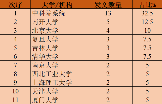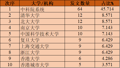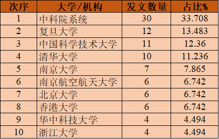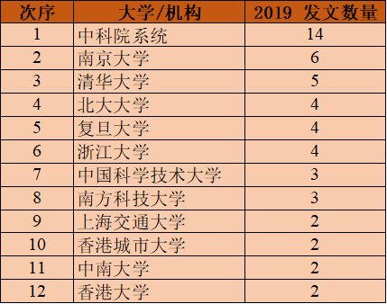 2019年我国在Nature Communications上以通讯作者或参与发表231篇材料类论文,数量庞大。发文TOP10大学/机构如下: