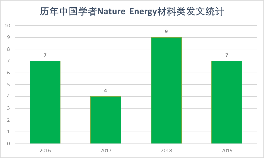 2019年我国在Nature Energy上以通讯作者或参与发表7篇材料类论文, Nature Energy影响因子已超Nature,实力不容小觑。月刊的Nature Energy发文量很少,2019年我国学者能发表7篇论文,也说明了在能源研究领域的超强能力。