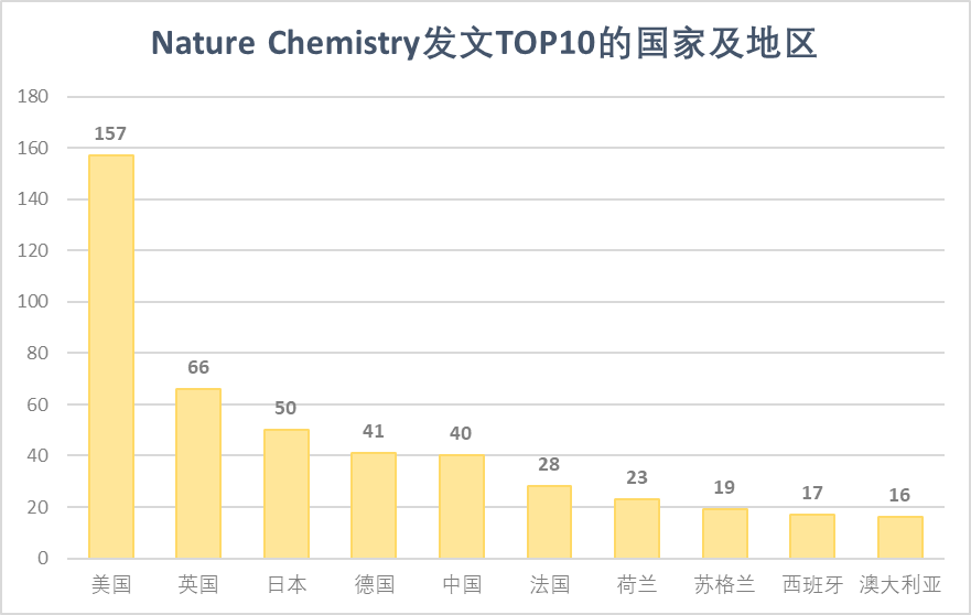 2009年创刊的Nature Chemistry历年发布了361篇材料类论文,领域中的高被引论文118篇,领域中的热点论文2篇,其中中国学者贡献了40篇材料类论文,领域中的高被引论文15篇,领域中的热点论文2篇,占全球的比例分别为11.1%,12.7%,100%。2019年我国在Nature Chemistry上以通讯作者或参与发表10篇材料类论文。笔者统计了历年Nature Chemistry发表论文TOP10的国家或地区、历年中国学者Nature Chemistry发表材料类论文数统计及我国发文数量TOP10的大学/机构如下所示。