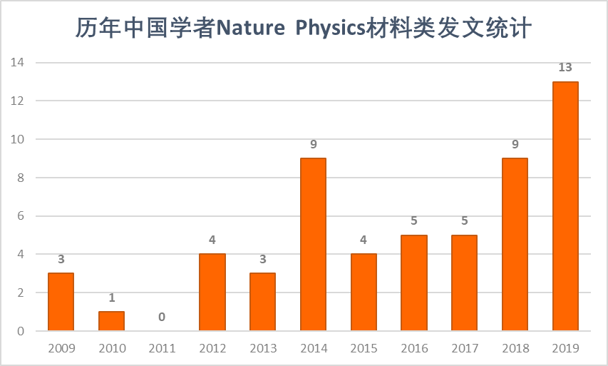 2019年我国在Nature Physics上以通讯作者或参与发表13篇材料类论文,其中中科院系统发表4篇,南京大学发表2篇,复旦大学发表2篇。
