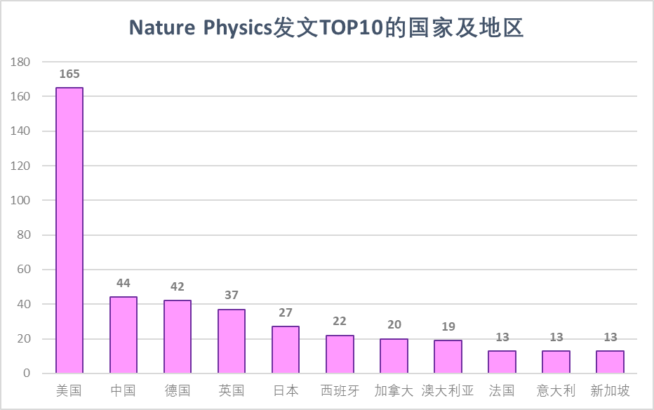 2005年创刊的Nature Physics历年发布了460篇材料类论文,领域中的高被引论文129篇,领域中的热点论文1篇,其中中国学者贡献了56篇材料类论文,领域中的高被引论文23篇,领域中的热点论文1篇,占全球的比例分别为12.2%,17.8%,100%。2019年我国在Nature Physics上以通讯作者或参与发表13篇材料类论文。笔者统计了历年Nature Physics发表论文TOP10的国家或地区、历年中国学者Nature Physics发表材料类论文数统计及我国发文数量TOP10的大学/机构如下所示。
