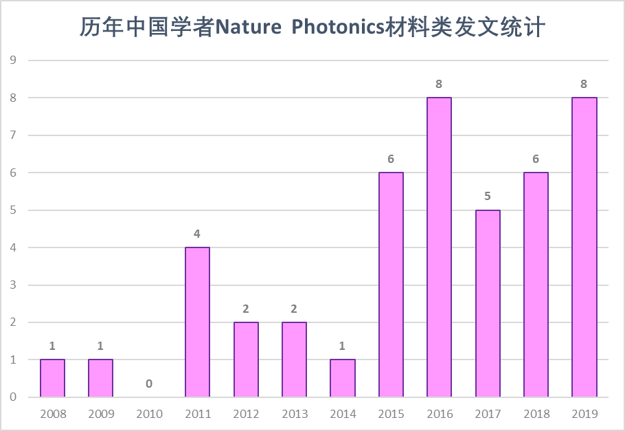 2019年我国在Nature Photonics上以通讯作者或参与发表8篇材料类论文,具体情况如下:
