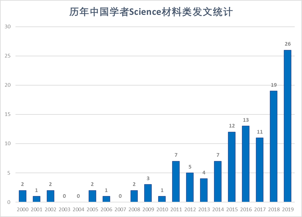 2019年我国在Science上以通讯作者或参与发表26篇材料类论文,可谓是大丰收。