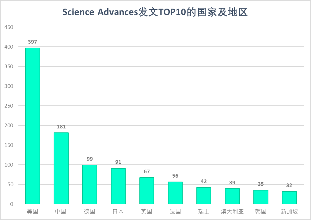 2015年创刊的Science Advances历年发布了677篇材料类论文,领域中的高被引论文53篇,领域中的热点论文4篇,其中中国学者贡献了181篇材料类论文,领域中的高被引论文14篇,领域中的热点论文2篇,占全球的比例分别为26.7%,26.4%,50%。2019年我国在Science Advances上以通讯作者或参与发表60篇材料类论文。笔者统计了历年Science Advances发表论文TOP10的国家或地区、历年中国学者Science Advances发表材料类论文数统计及我国发文数量TOP10的大学/机构如下所示。