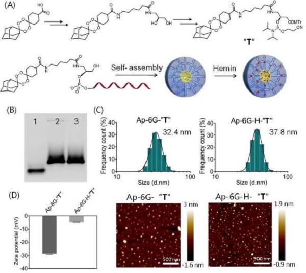 (C-D)Ap-6G-“T”和Ap-6G-H-“T”的DLS分析、AFM成像和Zeta电位。