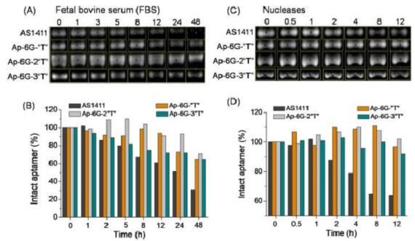 (A-B)琼脂糖凝胶分析游离核酸适体和不同ApPdC胶束在FBS中的降解速率;