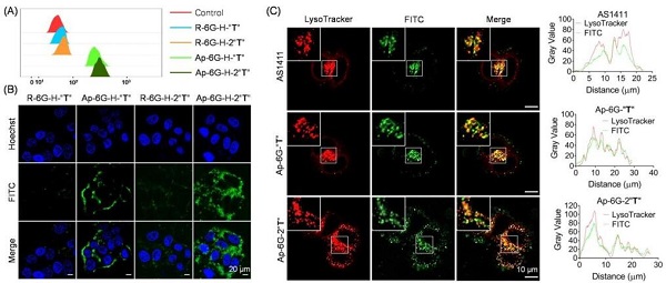 (B)共聚焦荧光成像分析ApPdC和非靶向胶束在HepG2细胞中的结合能力;
