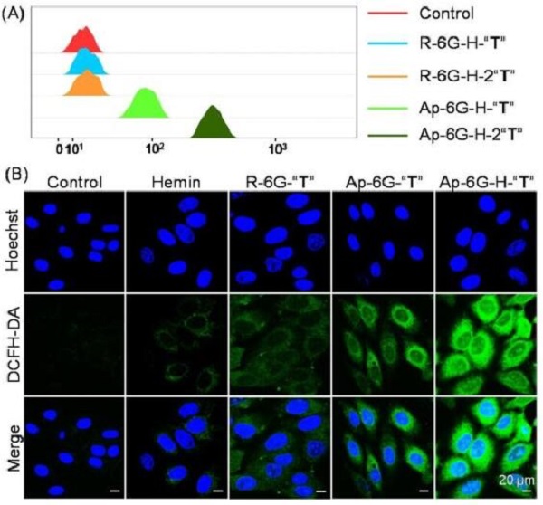 (B)共聚焦荧光成像显示不同处理后HepG2细胞中的自由基水平。