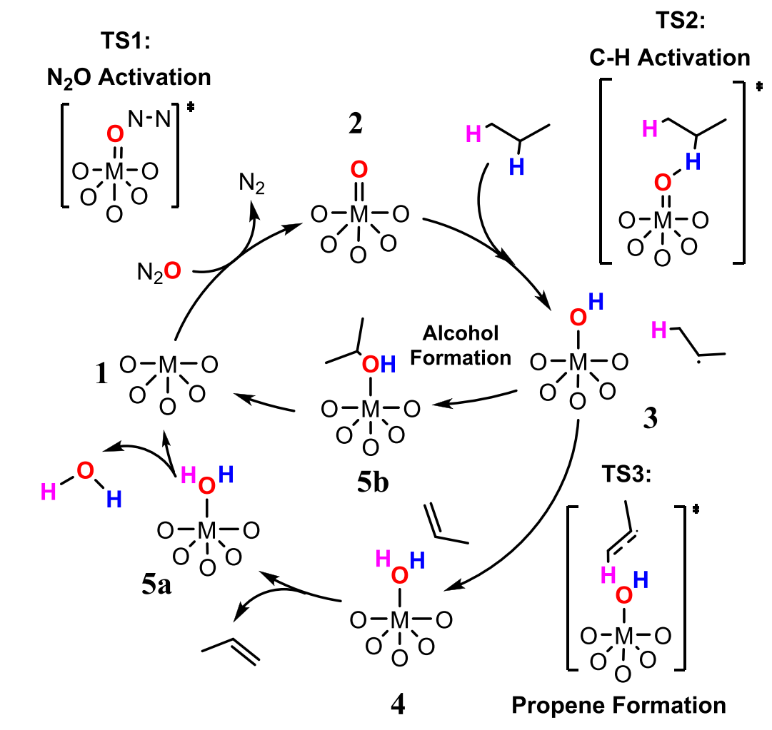 MOFs的模块化结构使其成为催化剂设计和阐明催化结构/性能关系的理想平台。在这项工作中,美国西北大学Justin M. Notestein、Omar K. Farha及Randall Q. Snurr教授系统地改变了MOF PCN-250金属节点(Fe2M)的组成并利用密度泛函理论(DFT)鉴定了对轻烷烃C-H键活化的催化性能。在烷烃氧化脱氢(ODH)过程,以N2O为氧化剂,了解PCN-250中氧进入Fe2M节点的反应活性,其中Fe离子为+3氧化态,M为+2氧化态金属。研究发现,N2O的活化势垒与金属中心的氧结合能呈正相关,而C-H的活化势垒与金属中心的氧结合能负相关。对于含前过渡金属的团簇,氧结合强烈,促进了N2O的活化,但阻碍了C-H的活化。为了验证DFT预测,我们合成并测试了PCN-250(Fe2M),M= Mn, Fe, Co, Ni,发现PCN-250(Fe2Mn)和PCN-250(Fe3)比PCN-250(Fe2Co)和PCN-250(Fe2Ni) 更活跃,与DFT预测相一致,证明了DFT计算在预测和识别烷烃C-H键激活的MOF催化剂方面的能力。相关研究以“Computational Predictions and Experimental Validation of Alkane Oxidative Dehydrogenation by Fe2M MOF Nodes”为题目,发表在ACS Catalysis上。