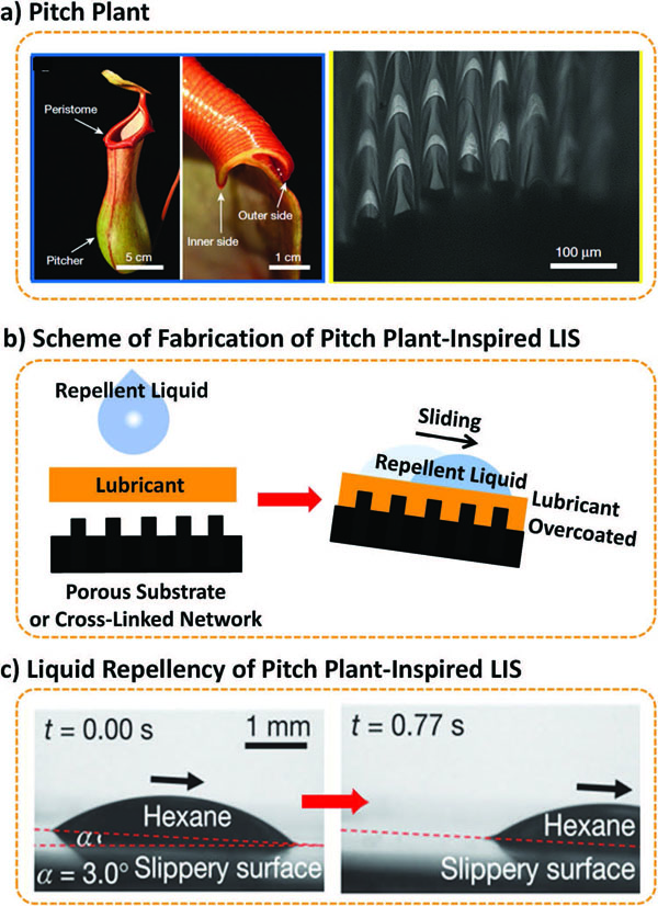 图1 受猪笼草结构启发的液体灌注表面(Liquid-Infused Surfaces, LIS)
