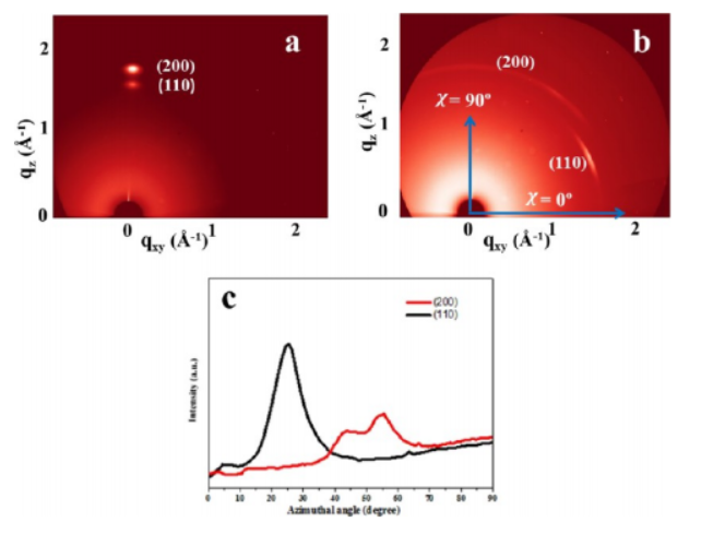 图4. PE取向薄膜退火前后的入射X射线衍射