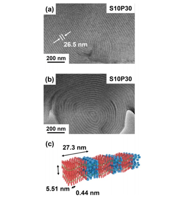 图6.S10P30的TEM显微照片(a,b)和分层结构的示意图(c)