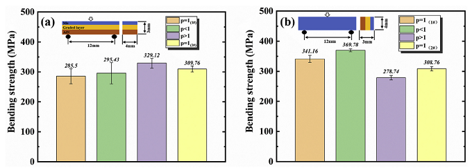 图12 AlN/Mo FGMs的弯曲强度(a)轴向(b)径向[12]
