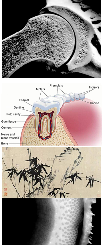 图2 自然界中的梯度材料(骨骼、牙齿、竹子)