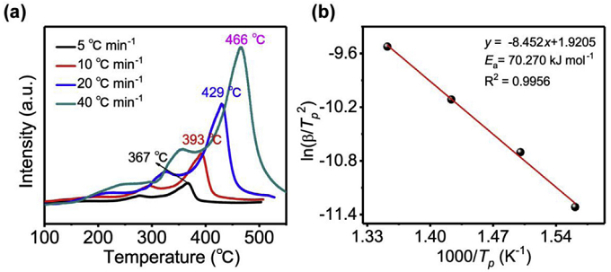 图8 LiBH4+40 wt% MXene材料的质谱曲线和Kissinger图
