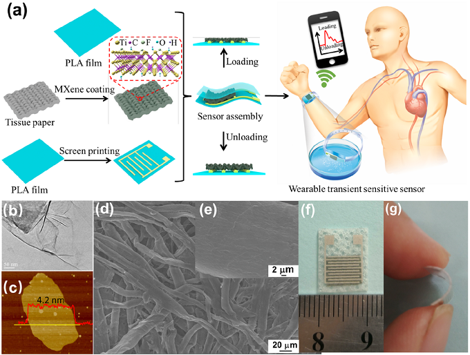图9 采用Ti3C2Tx MXene制备的可穿戴瞬态压力传感器
