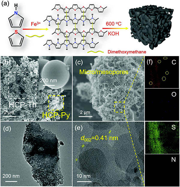 (b,c)HCP-Py0.2Th0.8和N0.2S0.8-MC的SEM图像,