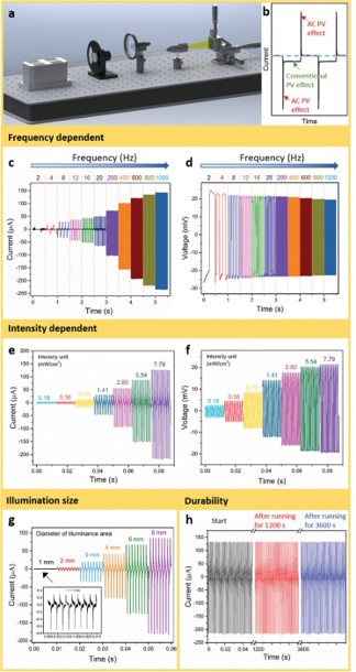 文中指出这种新型交流电模式不能用常规光伏器件的既定机制来解释,现已知的光电效应的多种效应都是直流电,无法解释这个交流电信号。该文对机理进行了深入实验和分析,认为产生该现象的原因是由于在非平衡条件下与结/界面相邻的半导体产生过剩载流子,造成准费米能级之间的相对偏移,电子分布失衡,这导致了电子前后在外部电路中流动以建立新的平衡来平衡电极之间的电位差。