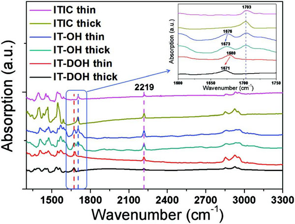 图4 ITIC、IT-OH和IT-DOH薄膜的傅立叶变换红外(FTIR)吸收光谱