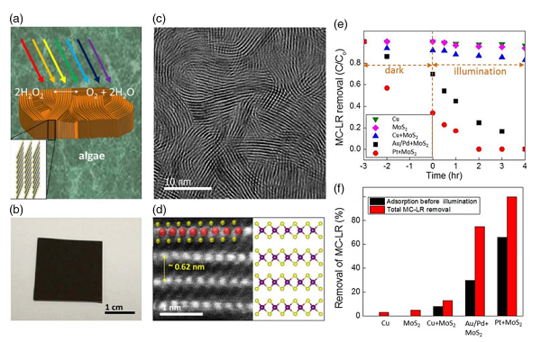 (a) MoS2薄膜光催化降解原理图;