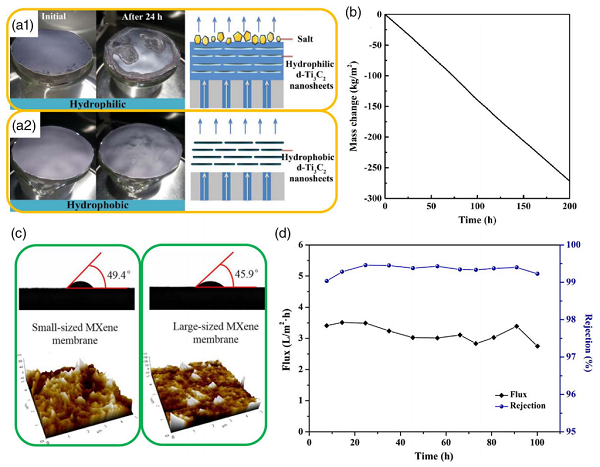 (a) Ti3C2-MXene的防盐沉积自清洁条件;