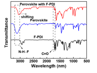 图1:F-PDI,纯钙钛矿、F-PDI与钙钛矿混合的红外光谱[1]