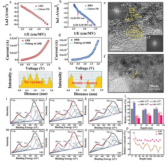 (a-d) LRS和HRS的拟合曲线及对应的I-V曲线;
