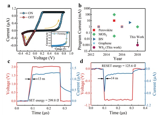 图5. Pd/WS2/Pt 忆阻器件的基本特性
