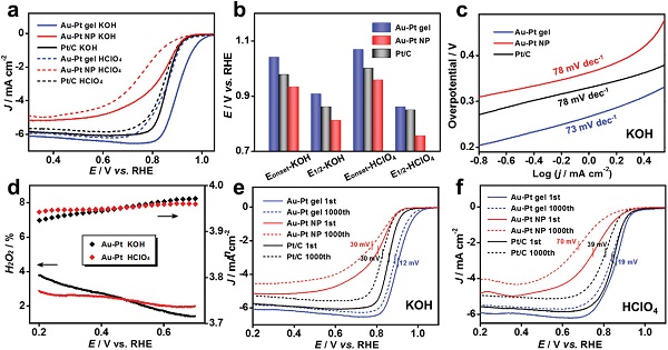 图四 Au-Pt气凝胶与商用Pt/C的ORR性能