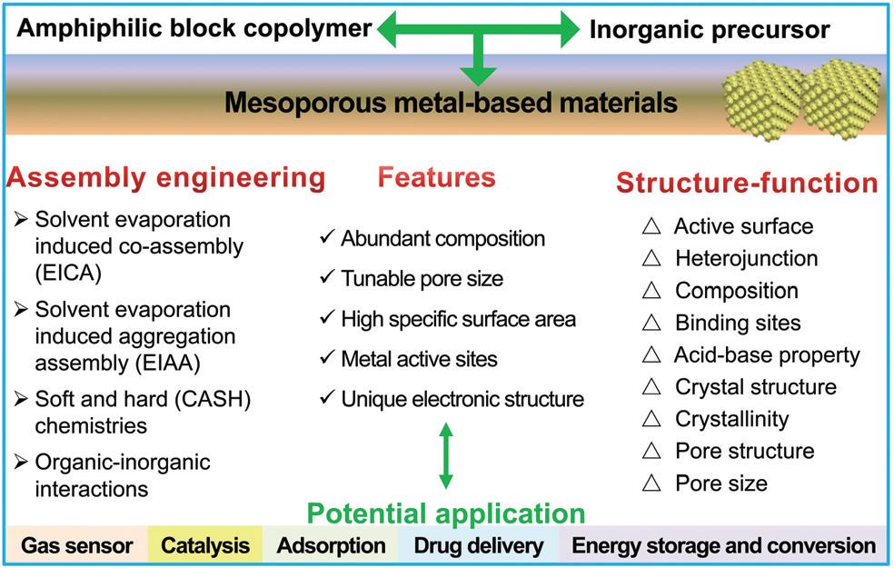 文献链接:Recent advances in amphiphilic block copolymer templated mesoporous metal-based materials: assembly engineering and applications (Chem. Soc. Rev., 2020, 49, 1173-1208. DOI: 10.1039/C9CS00334G)