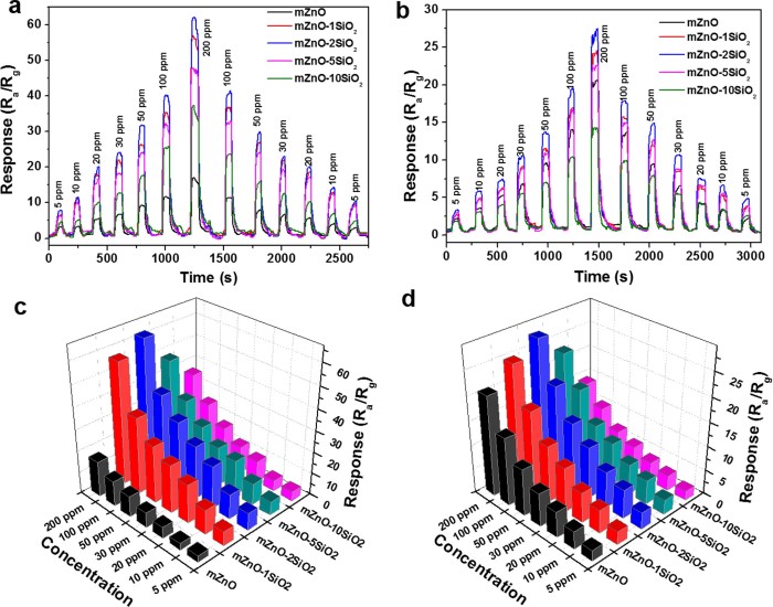 图8 SiO2掺杂的有序介孔ZnO杂化材料的传感性能研究
