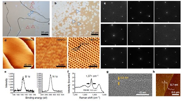 文献链接:Wafer-scale single-crystal hexagonal boron nitride monolayers on Cu (111)(Nature, 2020, DOI: 10.1038/s41586-020-2009-2)