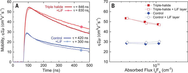 图2 三卤化物钙钛矿薄膜的载流子迁移率和寿命