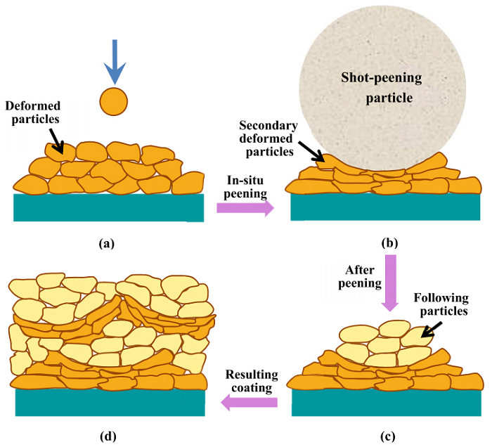 图10 原位喷丸辅助冷喷涂致密化涂层原理示意图