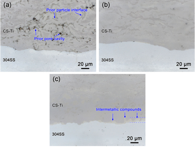 图9 后热处理改善冷喷涂Ti6Al4V沉积体内聚强度