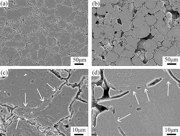 (a)和(c)为冷喷涂Ti沉积体,(b)和(d)为冷喷涂Ti6Al4V沉积体