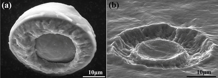 图6 Ti6Al4V粒子撞击到Ti基板上剥离后的微观形貌