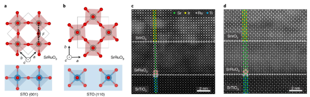 图示 SrIrO3/SrRuO3的示意图和结构表征