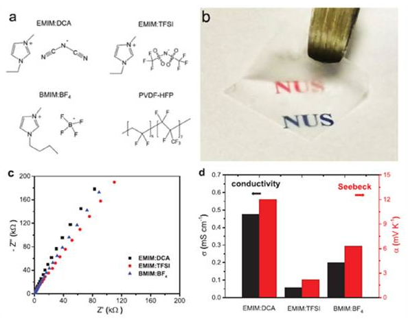 Flexible Quasi-Solid State Ionogels with Remarkable Seebeck Coefficient and High Thermoelectric Properties, Advanced Energy Materials, 2019, 9, 1901085.