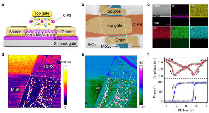图示 CIPS/MoS2范德瓦尔斯异质结构及负电容场效应管