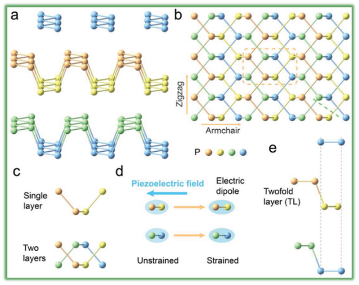 中国科学院北京纳米能源与系统研究所王中林院士和潘曹峰研究员等人研究了多层BP的压电性,包括对其非中心对称晶格的分析,其拉曼光谱的各向异性以及在其设备中记录压电效应和压电信号。重要的是,对压电性,开关极性和线性叠加的测量确认了多层BP中压电信号的存在。而且,显示出压阻现象主要源于通过压电调制的界面势垒。这种灵活的BP发生器易于制造且相对稳定,但对静电敏感。多层BP中的压电性为制造生物机械能采集设备,机电传感器,制动器,能量存储设备,晶体管和光电探测器提供了绝佳机会。具体而言,该研究为BP材料中没有离子极化的压电性提供了指导。研究人员未来将探索多层BP中的其他压电机制。