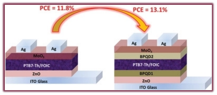 北京大学占肖卫教授和青岛大学姜倩倩,唐建国教授等人利用液体剥落法合成的BPQDs作为IMs来修饰OSCs的ETL和HTL。由于它们的双极性电荷传输,高迁移率和合适的能级,形成了级联能带结构,并且实现了有效的电荷转移和减少的电荷复合。结果,基于PTB7-Th / FOIC的OSC的PCE从11.8%提高到13.1%。此外,BPQD的并入不会影响OSC的良好稳定性。此外,对于PTB7-Th/ITIC,PTB7-Th/FNIC2和PTB7-Th/PC70BM,BPQD的引入可使PCE分别从6.58%提高到7.90%,11.9%提高到13.3%,以及8.30%提高到9.45%。这项工作证明了BPQD作为具有普遍性的OSC中HTL和ETL的界面修饰剂的广阔前景。