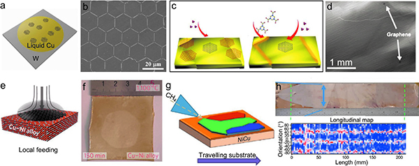 图四、表面调控(a)Cu(111)上生长取向一致的石墨烯晶畴光学图;