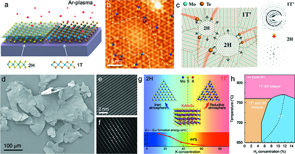 图五、 杂相抑制(a)等离子体诱导MoS2由2H相到1T相的相变示意图;