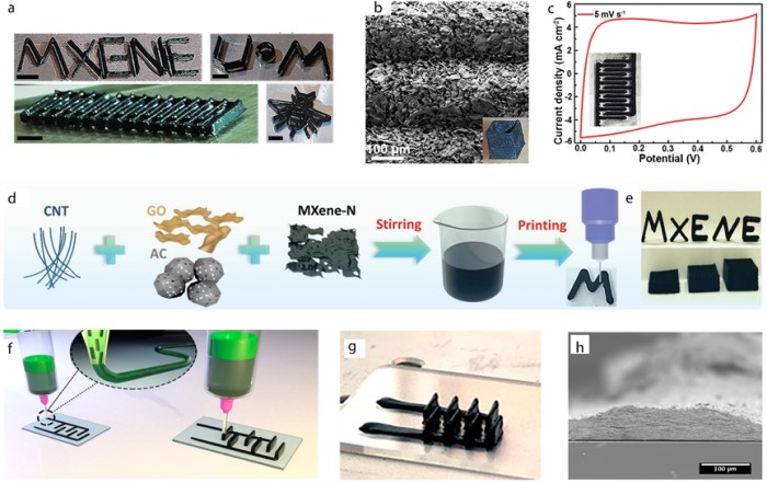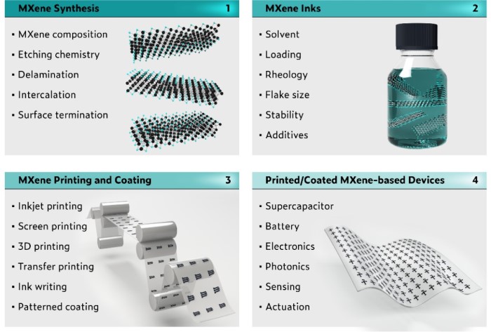 图1. 制备印刷/图案化沉积MXene器件的关键要素