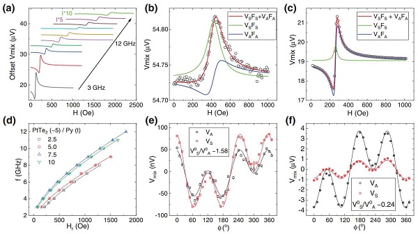 图四、PtTe2/Py堆叠的ST-FMR结果