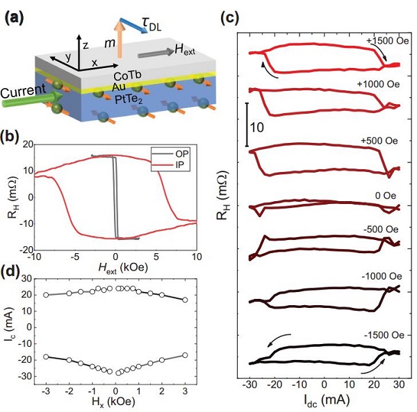 图六、PtTe2的SOT电流诱导的CoTb层切换