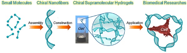 图一、由分子基元组装构筑的手性超分子水凝胶原理图